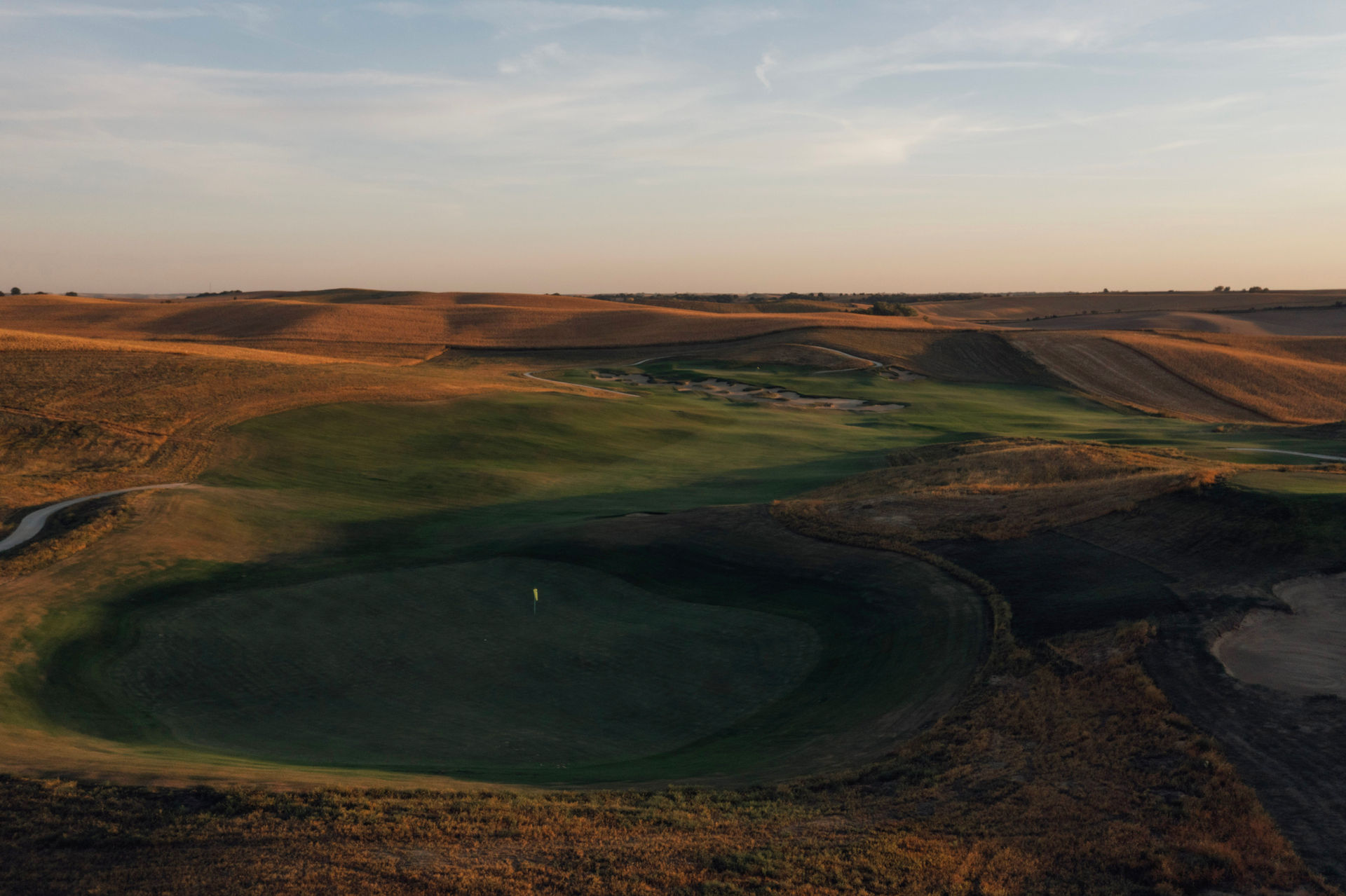 After touring the Old Dane & a piece of property on the Missouri River, Tad & I asked to go “up top.” We wanted to see the land that overlooks it all. After a few opaque references to the third parcel during our look at the first two sites, we weren’t sure what was in store for us. The second we pulled up to what is now the 18th green/1st tee, we knew without a doubt that this was it. This was the big opportunity that we’d fought and scratched for our entire careers. The land was just on another level. Everything was magnified: the views, the contours, the boldness, and above all else, the potential. It was the perfect opportunity at the perfect time for King-Collins.